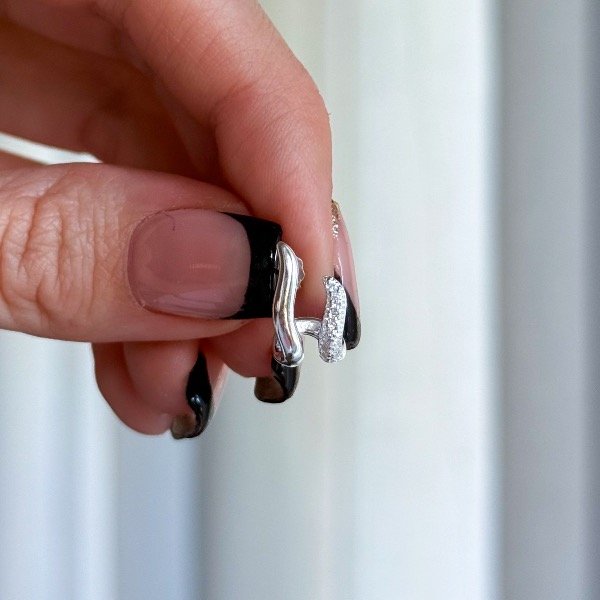• Aros de Plata 925 y cubic. Importante: Solo se necesita una perforación en cada oreja. Este modelo simula tener dos perforaciones.