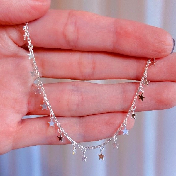 • Gargantilla de Plata 925. Incluye cadena de plata 925 y dijes de plata 925 en forma de mini estrellitas